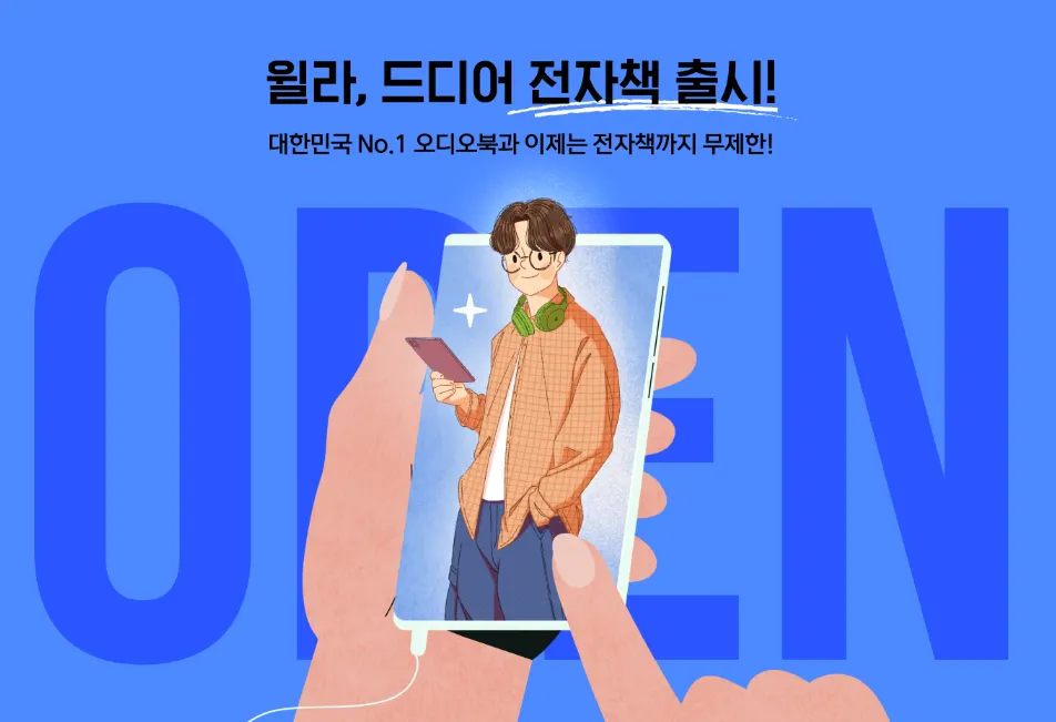 윌라(Welaaa)는 ‘We Learn Anything, Anytime, Anywhere’을 모토로, 언제-어디서나-무엇이든지 듣고, 보고, 배울 수 있는 ‘토탈 독서 솔루션’입니다. 기존에 오디오북을 필두로 전문 성우 낭독으로 실감나게, 100% 완독본으로 완전하게, 마음껏 즐길 수 있게 무제한으로, 사랑하는 가족과 함께 즐길 수 있는 서비스를 제공했다면, 이제부터는 신간부터 베스트셀러까지 전자책 서비스도 함께 제공합니다!