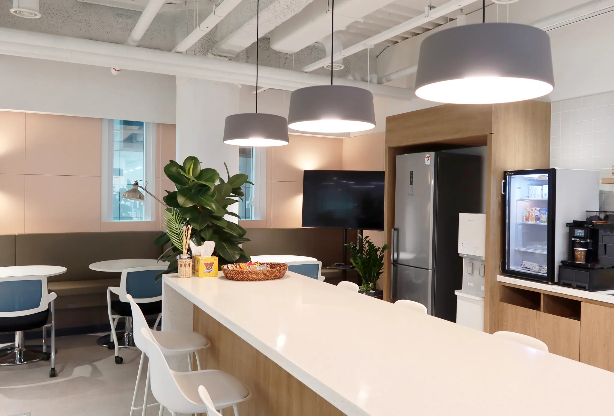 아침에 출근해서 내리는 커피 한 잔, 점심 식사하고 피로가 조금 몰려올 즈음 커피 두 잔, 그리고 출출한 오후 각종 견과류와 스낵, 호떡/와플/모닝브레드 등 베이커리류까지. 이 곳에서 점심 식사도 하고, 오며 가며 동료들과 근황, 업무 이야기도 나누곤 합니다.