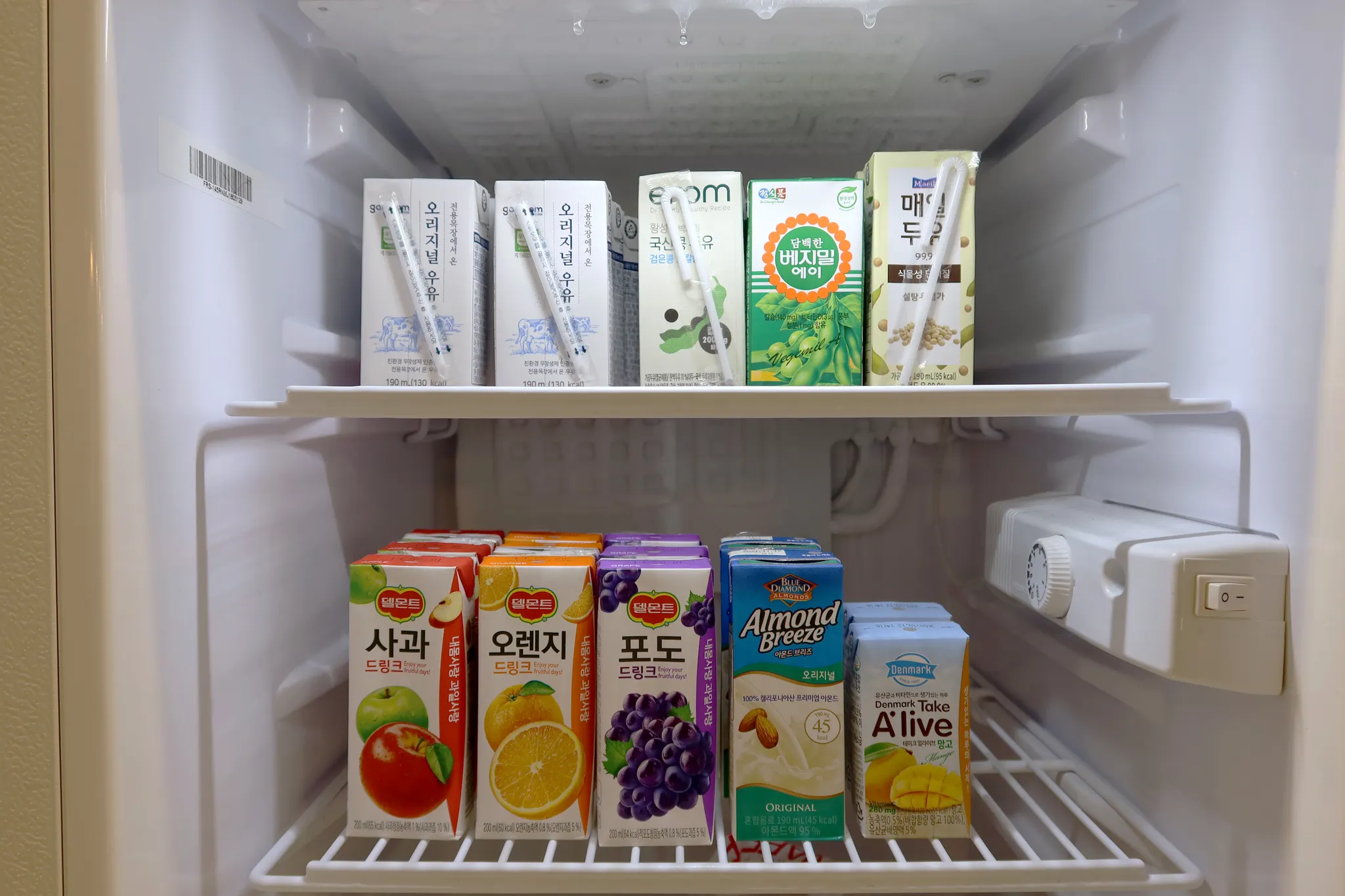 커피와 각종 음료, 다과가 준비되어 있어요.